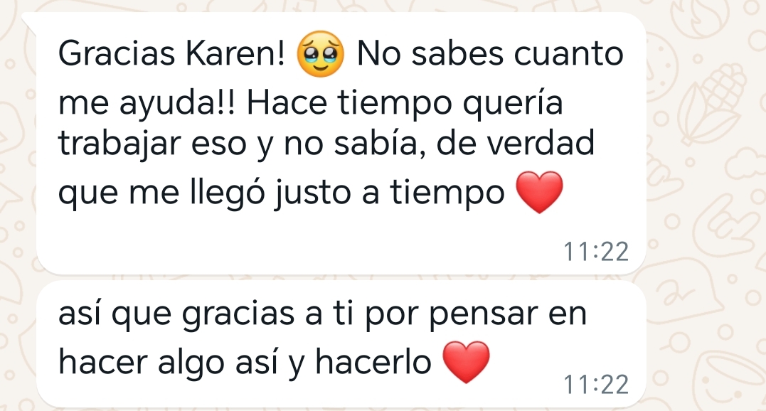Y desde ese momento, mi vida cambió😊. Me atreví a trabajar en mis proyectos personales y profesionales, como mi ebook "Maneja tu ansiedad con amor", mis cartas "Mi refugio de compasión", mi ebook "Comida sin cadenas" y ahora, este hermoso programa que nace de mi experiencia y aprendizaje.
