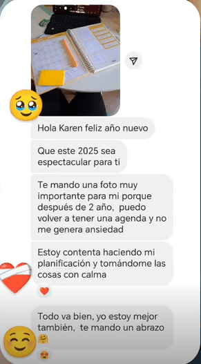 Hoy me abrazo como nunca antes, celebrando mis logros y mis pasos, con una Karen que ya no vive atrapada por el miedo, sino en calma y confianza🥹. Quiero que tú también llegues ahí. Este es tu momento.